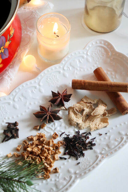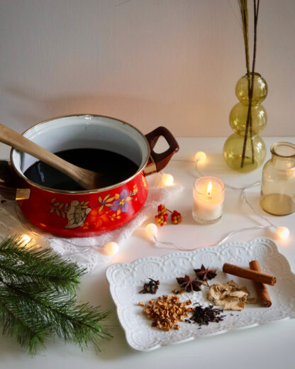 - お好きなワイン(赤ワインがおすすめ!)500ml、砂糖大さじ4、本商品の残りのスパイスをすべて鍋に入れ、沸騰しないように弱火で5分ほどじっくり温める。